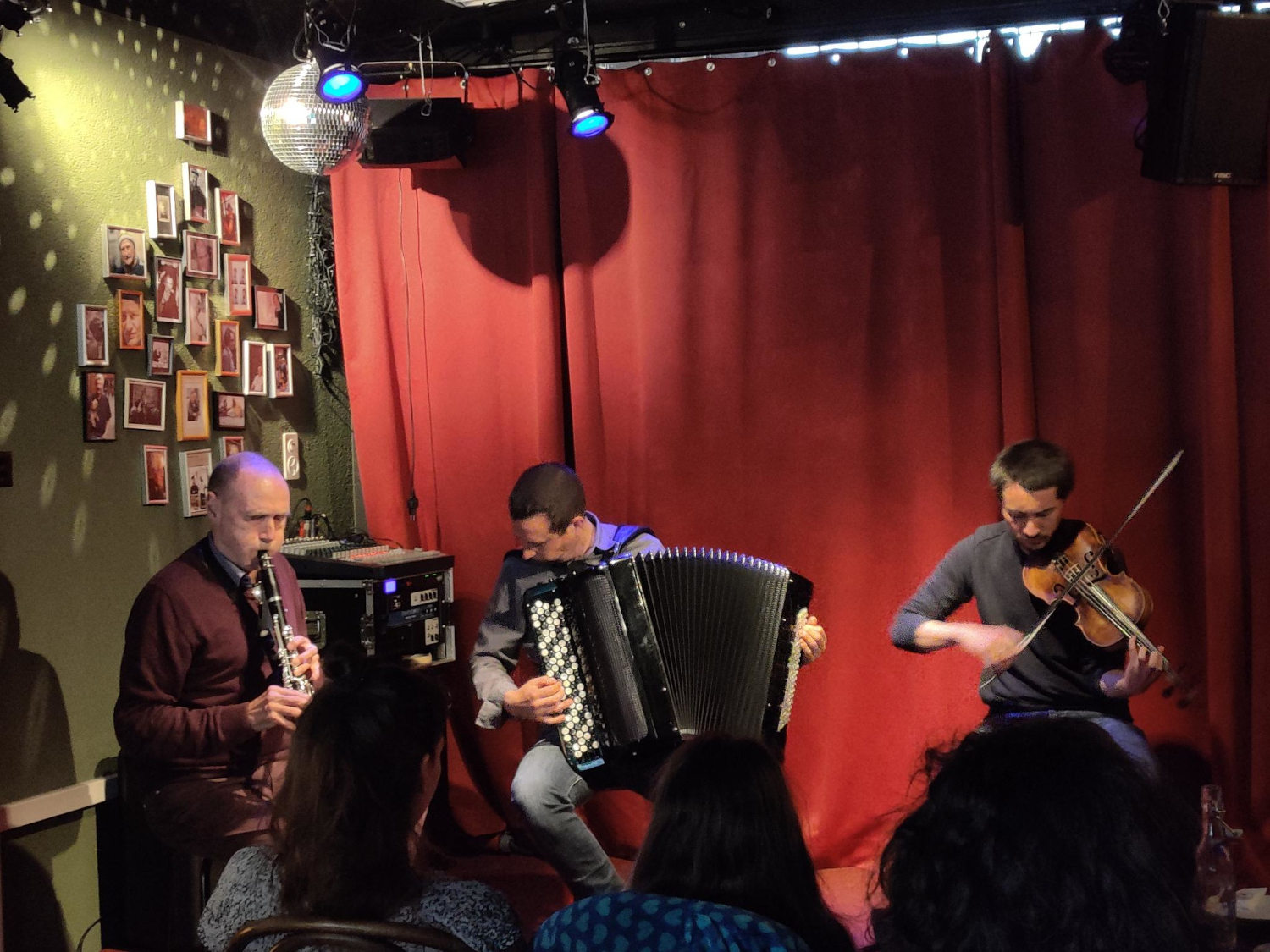 Viola, clarinet, and accordion—an instrumentation evocative of folk music trios. And indeed, the Koch-Loriot-Kocher trio’s music isn’t far from those roots. Their sound weaves together repetitive melodic motifs, extended techniques, and pure timbral exploration, creating something dense and distinctive.